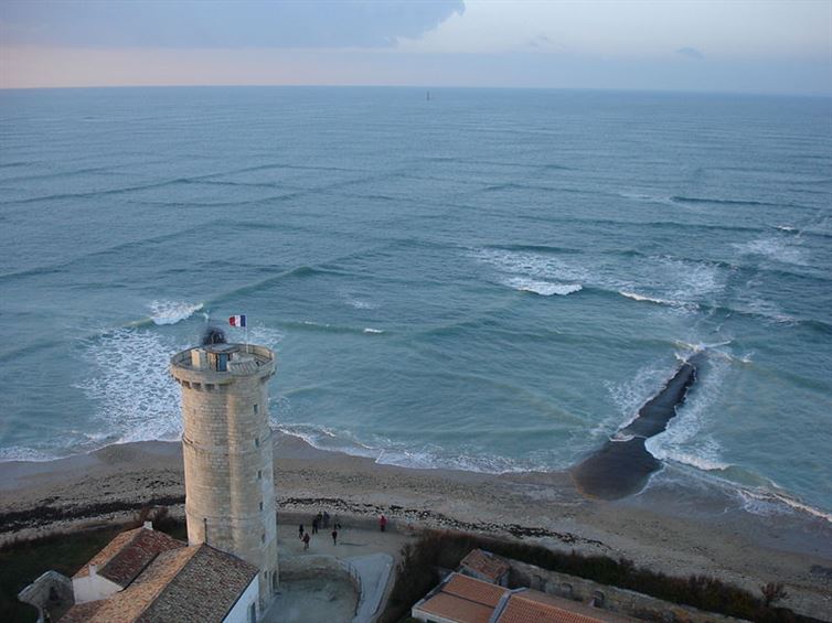 Either the grids on maps are real, or this photo is fake. Or, option three, this is an example of cross sea waves in the Isle of Rhé that can be explained by a simple equation.
